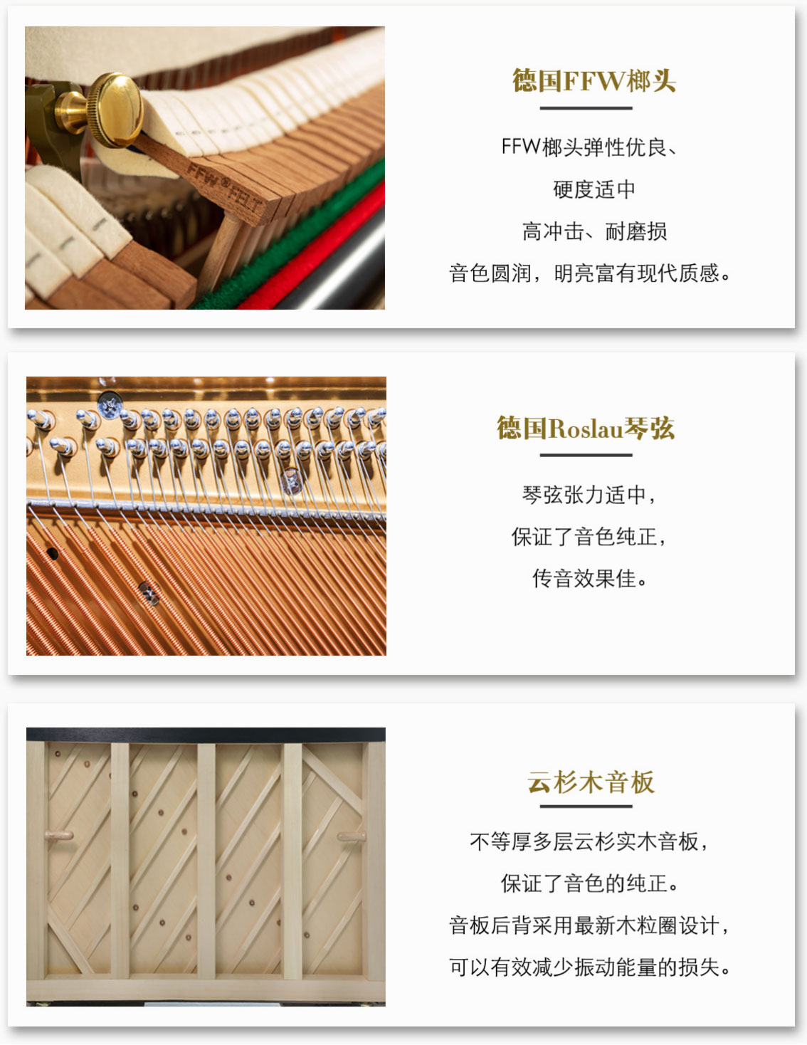 ◆ 琴弦采用德國(guó)進(jìn)口的Röslau(羅斯勞)專業(yè)制琴鋼絲