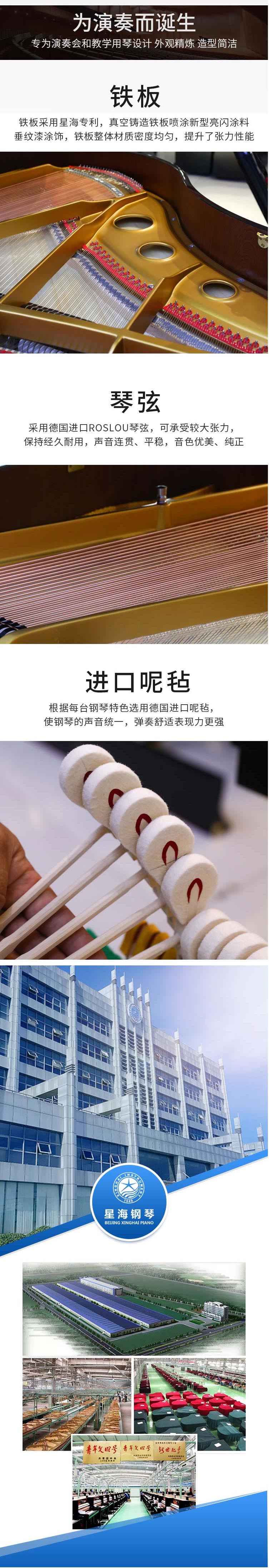 鐵 板:鋼板采用真空鑄造技術(shù),抗張力性能提高,其棱角清晰,表面細(xì)膩,噴涂了星海新型亮閃涂料,凸顯了金屬質(zhì)感,根據(jù)鋼琴發(fā)聲原理進行的結(jié)構(gòu)設(shè)計,提高了三個音區(qū)的協(xié)振性能。